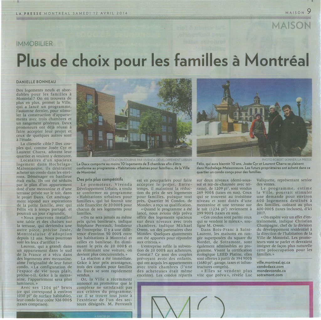 LA PRESSE : Plus de choix pour les familles à Montréal